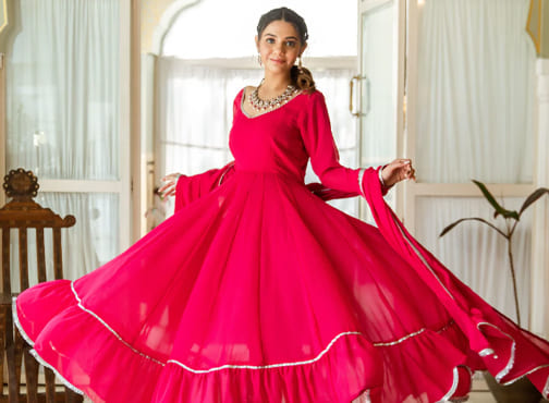 Anarkali suits are a symbol of grace and tradition, blending Mughal-era charm with modern fashion. These long, flowy dresses feature a fitted bodice and a flared bottom, creating a regal silhouette. Perfect for weddings, festivals, and special occasions, Anarkali suits are crafted from luxurious fabrics like georgette, silk, and cotton. Intricate embroidery, zari work, and embellishments add to their grandeur. Available in various styles, from floor-length gowns to lightweight casual designs, they cater to every woman's taste. Pair them with elegant jewelry and a dupatta for a stunning ethnic look. At Suitton Store, discover a stunning collection of Anarkali suits designed to enhance your elegance and make you stand out effortlessly.